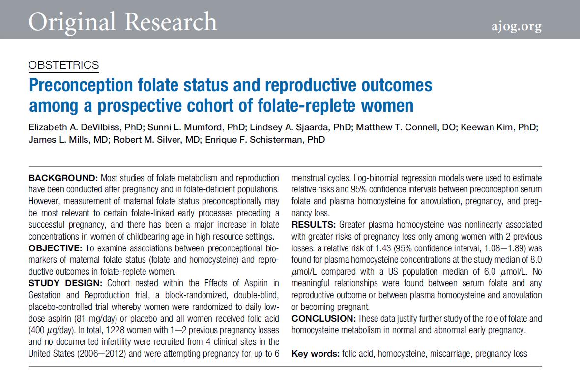Estos resultados demuestran que con una ingesta adecuada de ácido fólico,los resultados del embarazo dependen sobre la capacidad metabólica del folato, no solo los niveles séricos.