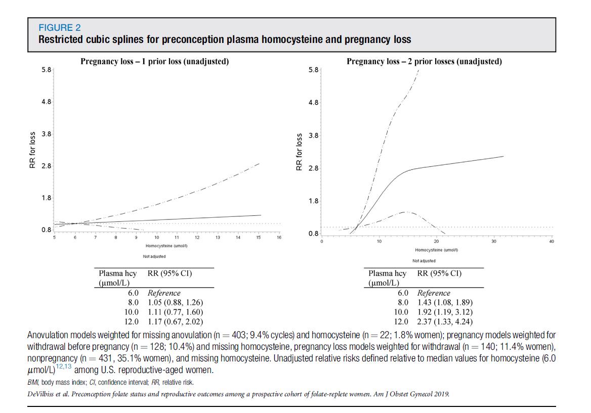 · Una clara relación dosis-dependientecon homocisteína (Hcy): entre mujeres con dos pérdidas previas, cada una de 2 µmol/L El aumento de Hcy (p. ej., de 6 µmol/L a 8 µmol/L) se asoció con una43% de aumento en el riesgo de aborto espontáneo.