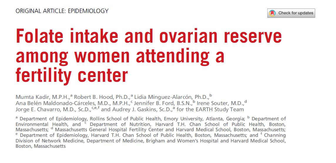 Este estudio analizó datos de 552 mujeres que visitaron el Massachusetts General Hospital Fertility Center en Estados Unidos, centrándose sobre la asociación entre la ingesta de ácido fólico y la función de reserva ovárica (medido por el recuento de folículos antrales, AFC).