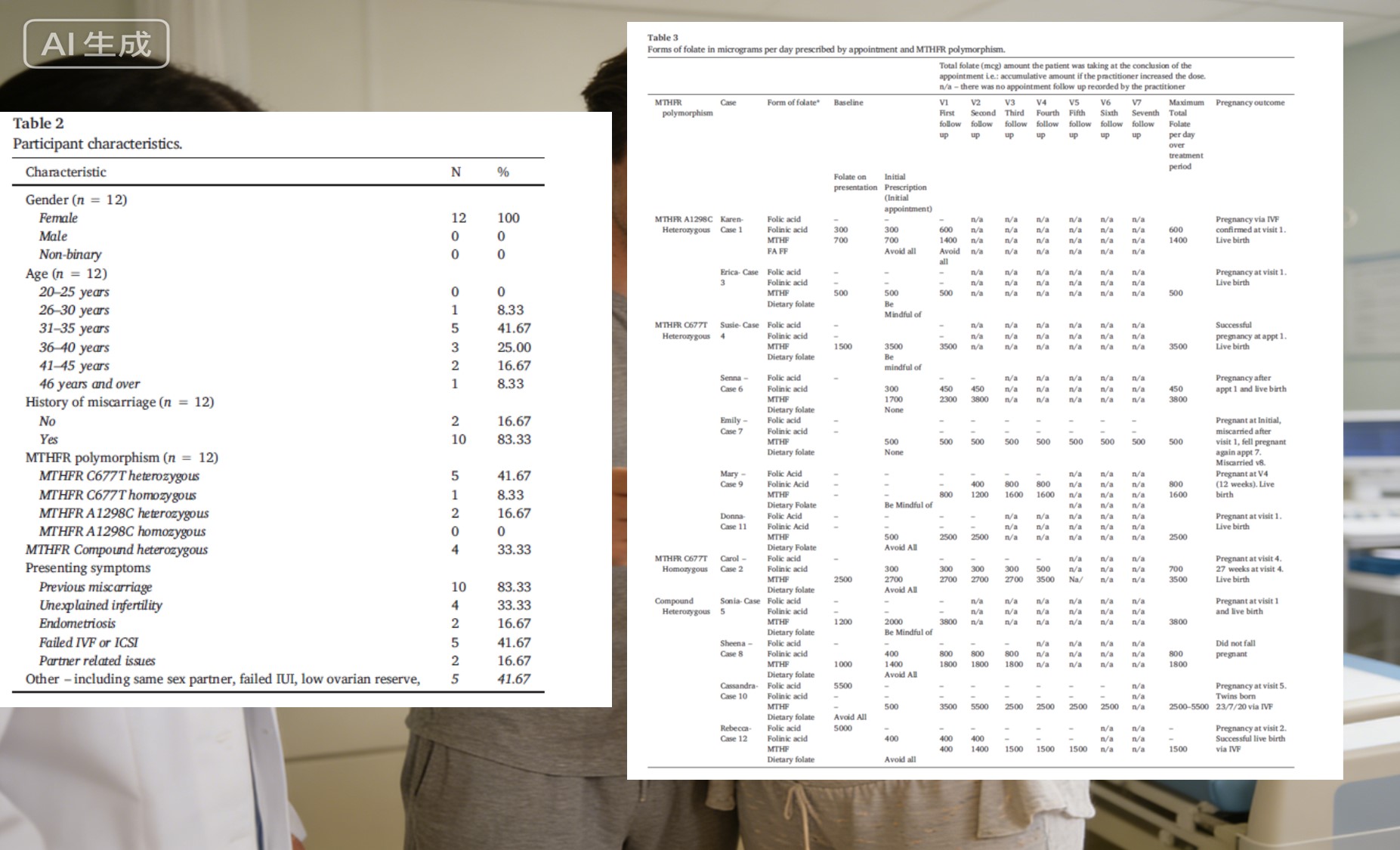 El estudio incluyó a 12 pacientes, el 83,3% de las cuales tenía antecedentes de aborto espontáneo. y el 41,7% había experimentado ciclos de reproducción asistida fallidos. todos fueron diagnosticado con polimorfismo del gen MTHFR (más comúnmente C677T heterocigoto, heterocigotos compuestos, etc.). Para estas mujeres, cada prueba de embarazo negativa Era más que un simple número: representaba agotamiento físico y emocional. Encontrar un plan nutricional verdaderamente adecuado se volvió urgente.