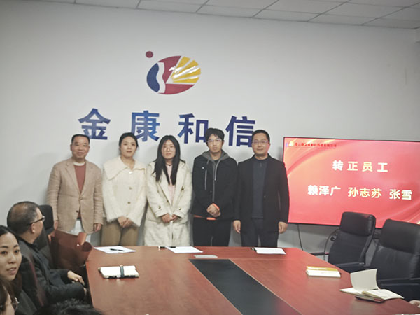 Con todos los colegas como testigos, tres nuevos miembros: Lai Zeguang, especialista en diseño; Sun Zhisu, especialista en registro; y Zhang Xue, especialista en recursos humanos, completaron con éxito su período de prueba y se convirtieron oficialmente en parte de la familia JKHX. Desde explorar y adaptarse durante el período de prueba hasta avanzar con confianza después de convertirse en empleados de tiempo completo, se han ganado el reconocimiento gracias a su desempeño diligente, al mismo tiempo que han inyectado nuevas ideas y vitalidad al equipo.