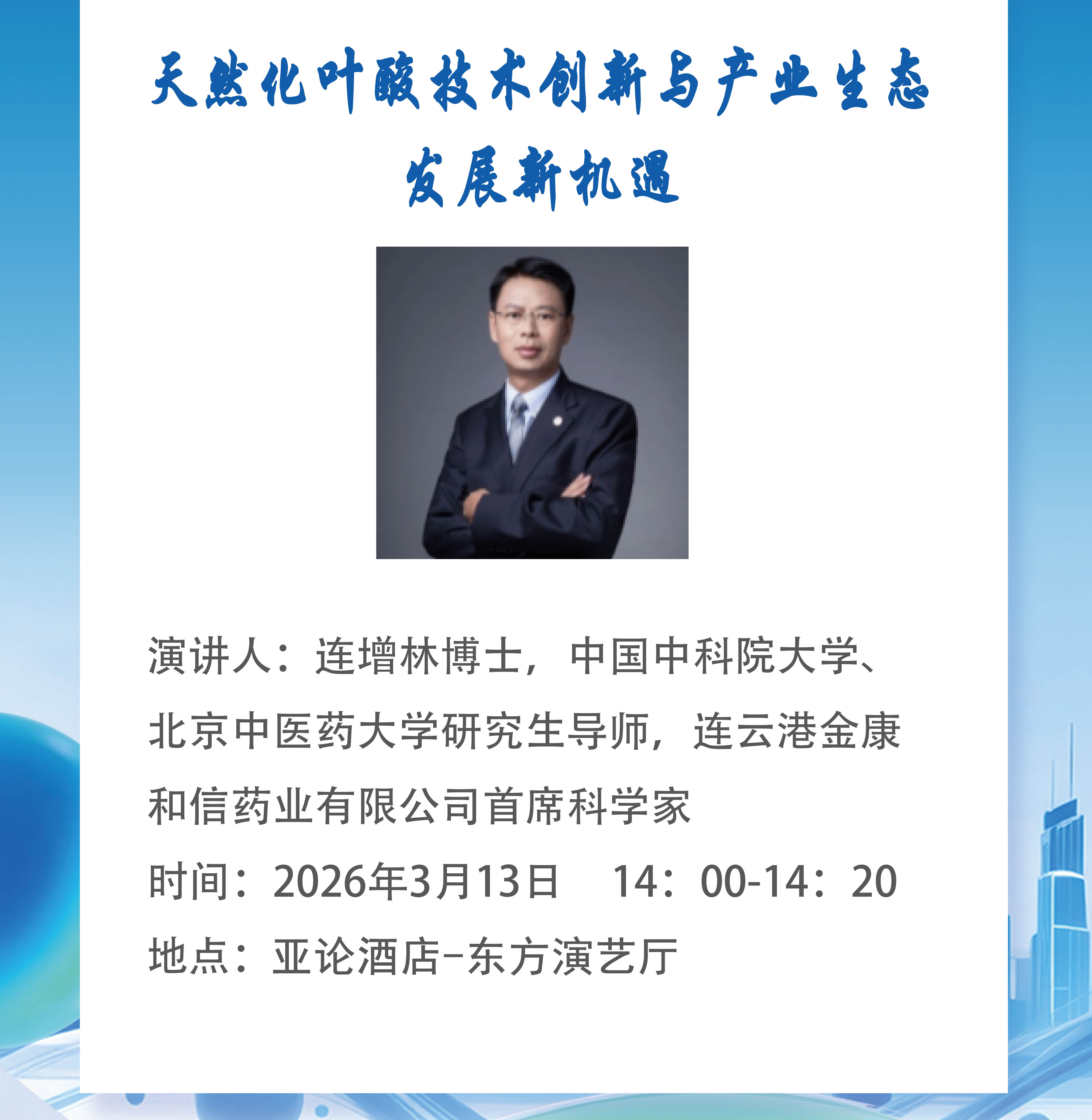 En esta exposición, el Dr. Lian Zenglin, Jefe El científico de Jinkang Hexin pronunciará un discurso de apertura titulado Innovación Tecnológica de la Naturalización del Folato y Nuevas Oportunidades para la Industria Desarrollo Ecológico el 13 de marzo. El discurso se centrará en tres temas centrales. Direcciones: Ventajas tecnológicas de la naturalización del folato; Diversificado Aplicaciones industriales, y Nuevas oportunidades de cooperación global. lo hará desbloquear conocimientos técnicos de vanguardia y explorar prácticas y accesibles Oportunidades de innovación industrial en sitio. Colegas en la alimentación y la salud. La industria está sinceramente invitada a asistir, escuchar, intercambiar ideas y explorar las infinitas posibilidades de la innovación y el desarrollo industrial potenciado por la naturalización del folato.