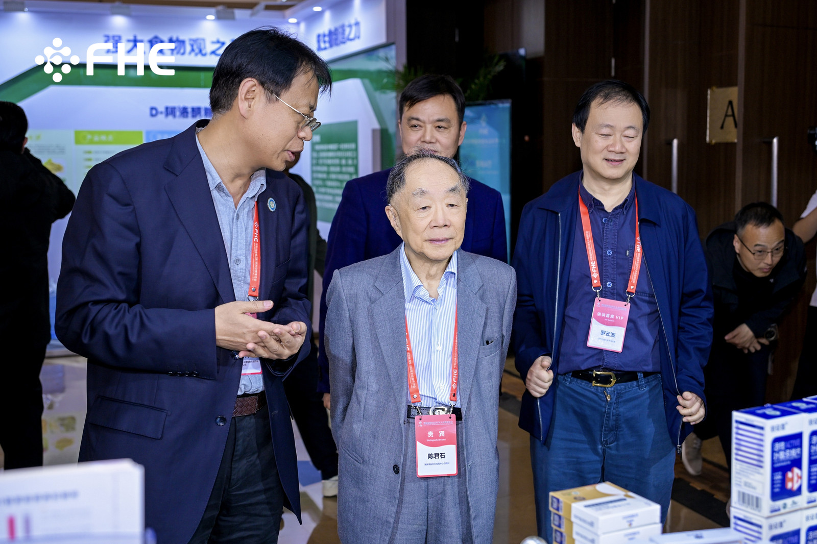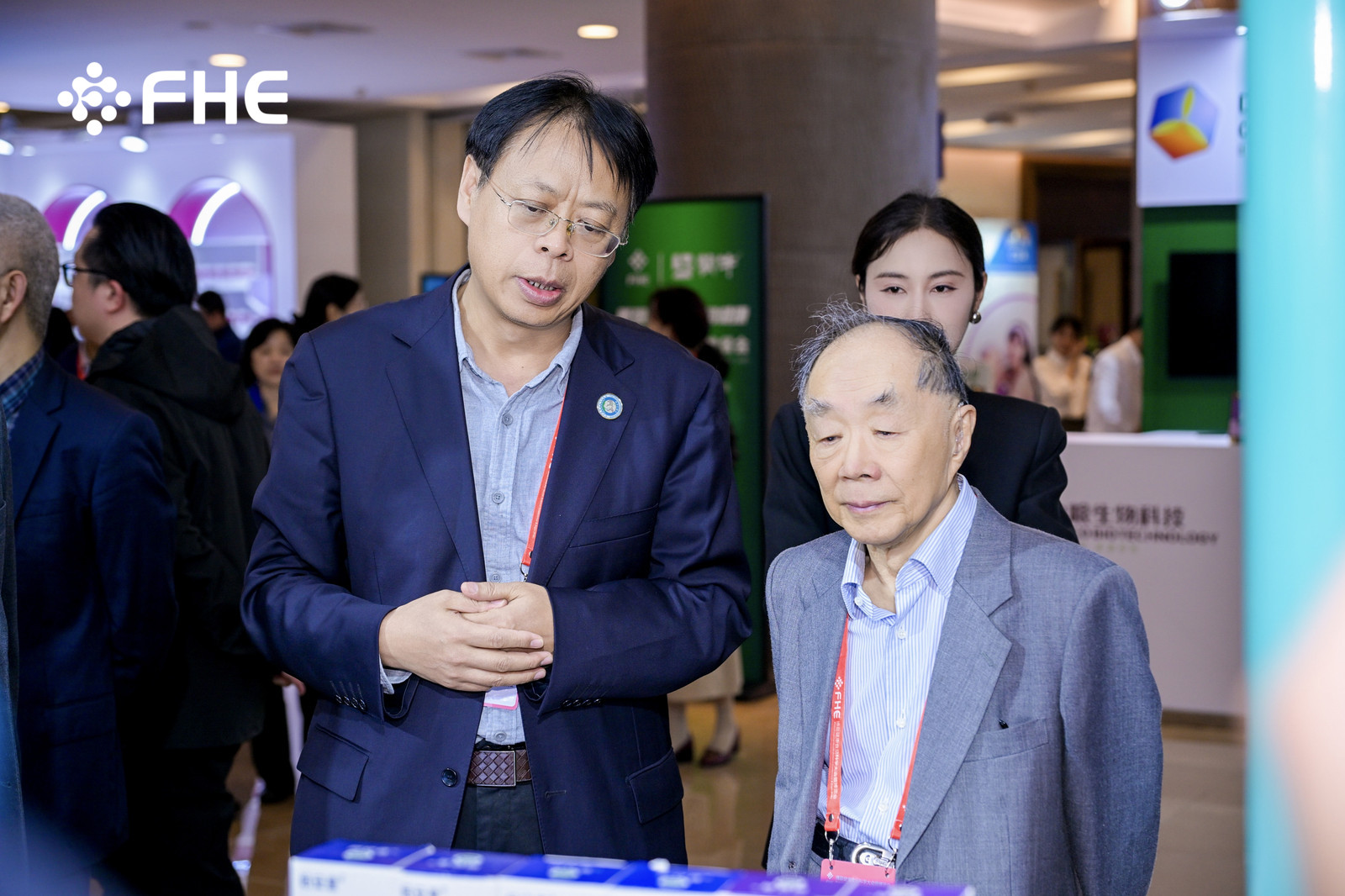 Acompañado de dirigentes de la FHE Comité Organizador, Sr. Chen Junshi, Académico de la Academia China de Ingeniero e Investigador del Instituto Nacional de Nutrición y Alimentación Safety, Centro Chino para el Control y la Prevención de Enfermedades, visitó nuestro stand para orientación.